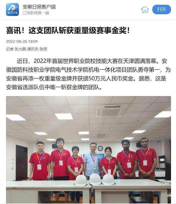 7、安徽日报报道学院获得首届世界职业院校技能大赛机电一体化赛项金牌