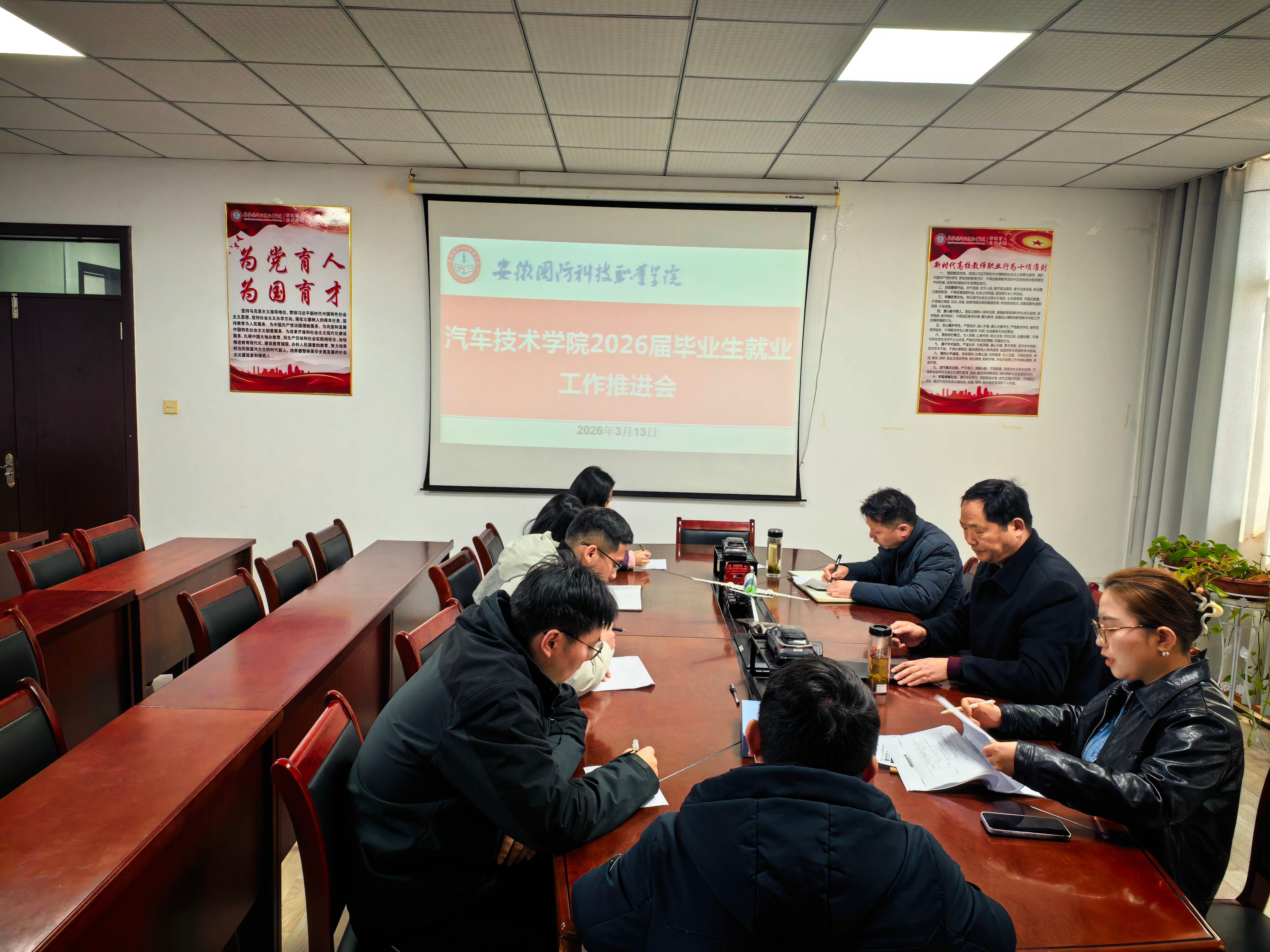 本网讯(汽车技术学院 黄世超)为有效推进2026届毕业生就业工作,实现更高质量和更充分就业,汽车技术学院于3月13日上午组织召开了2026届毕业生就业工作推进会。学院党总支书记孙良平、副院长(主持工作)姜继文、党总支副书记陈梦雅,就业辅导员及毕业班辅导员出席会议。会议由陈梦雅主持。
