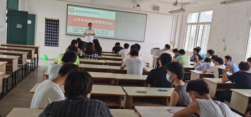 为进一步宣传国家资助政策,提升资助工作水平,培育大学生诚信守信意识,增强大学生社会责任感和使命感,根据学校《开展2020年学生资助诚信教育主题活动的通知》(校学函〔2020〕23号)文件要求,六月初,汽车技术学院党总支积极部署在院属各班级中开展诚信教育主题班会活动。
