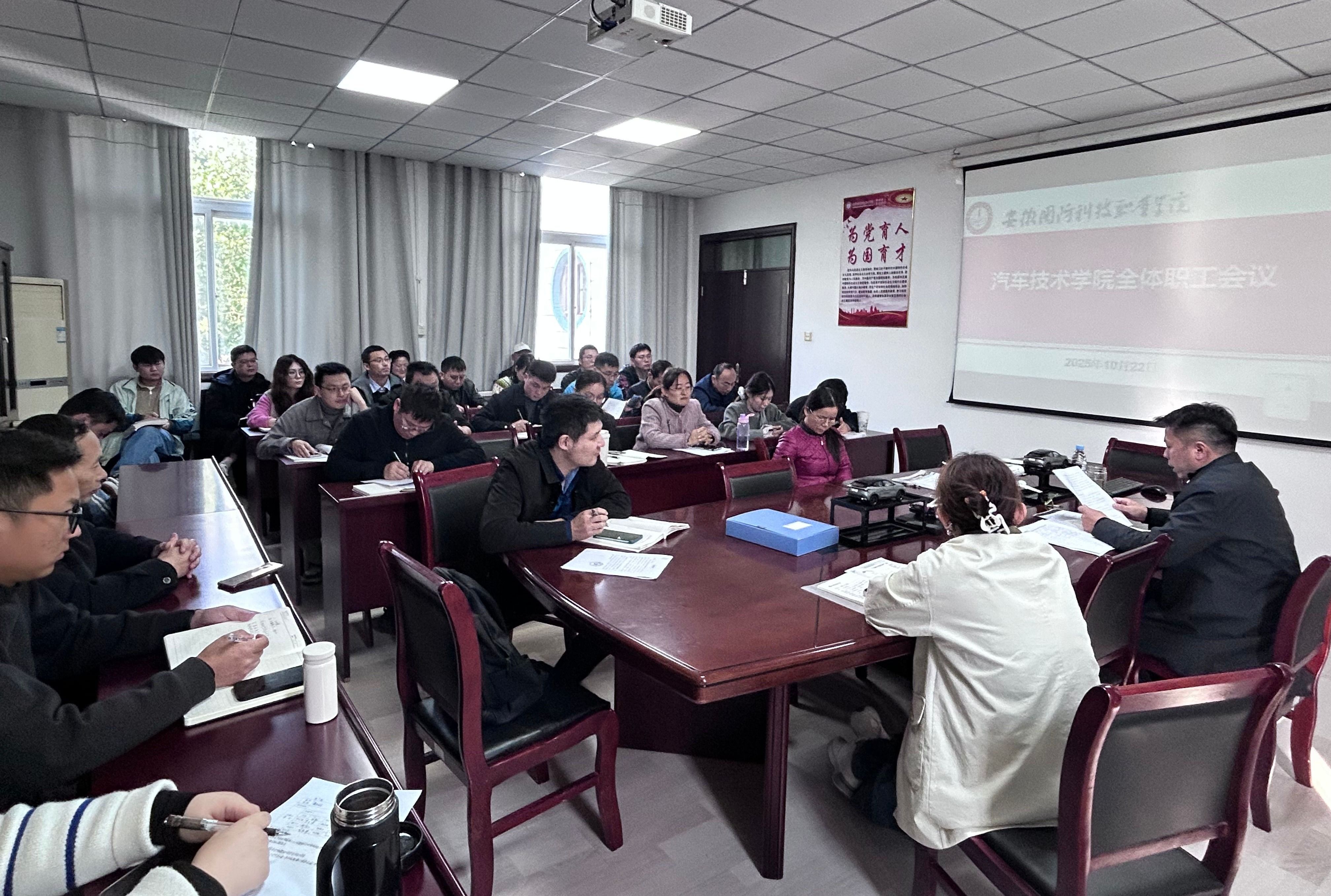 本网讯 为深入学习贯彻习近平新时代中国特色社会主义思想,贯彻落实上级党组织决策部署,进一步强化教职工大局意识和规矩意识,10月22日下午,汽车技术学院召开全体职工会议,副院长(主持工作)姜继文主持会议。