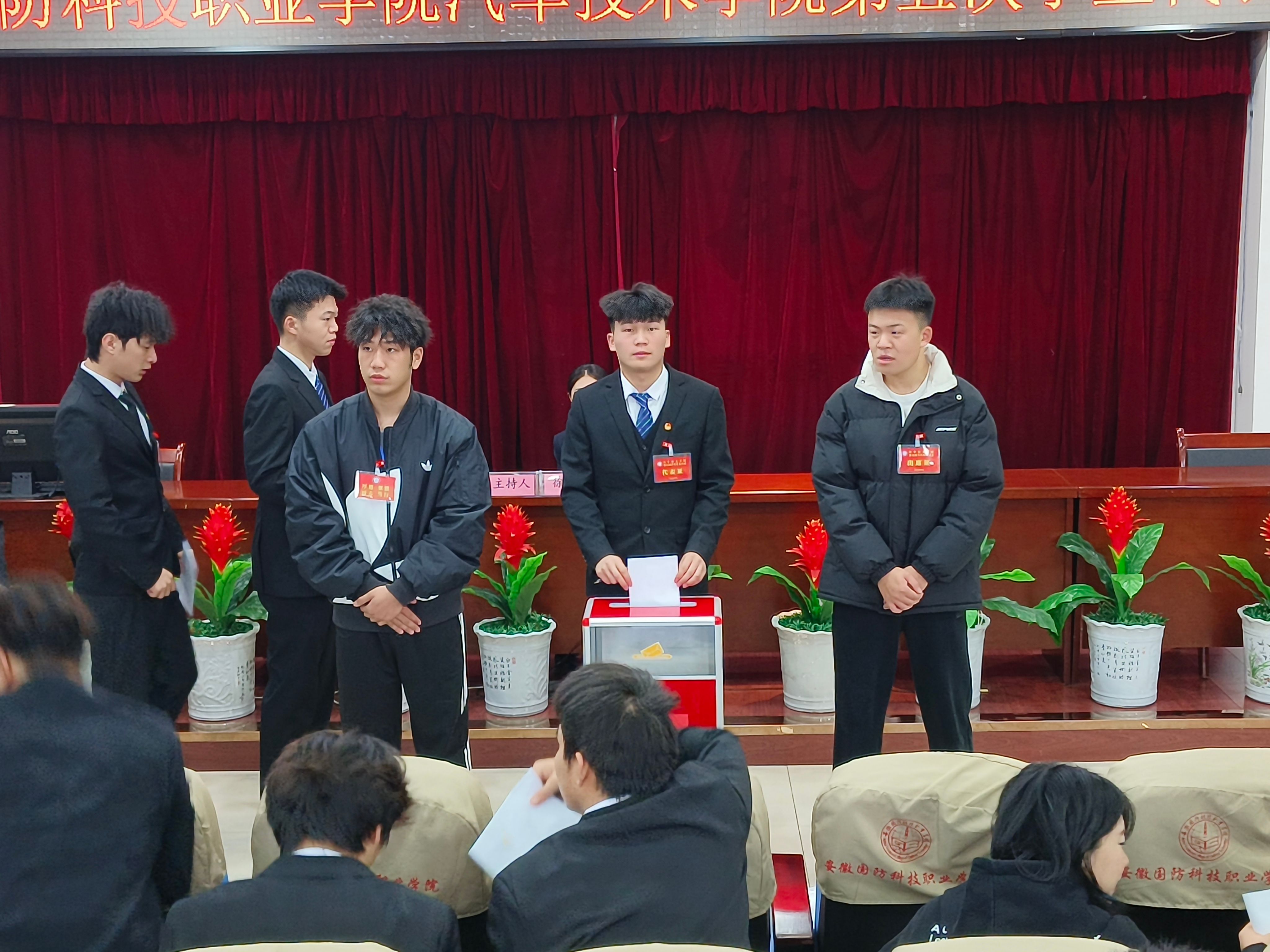 在接下来的全体会议中,与会代表认真听取并审议通过了《安徽国防科技职业学院汽车技术学院第十二届学生会工作报告》《汽车技术学院学生会章程》《安徽国防科技职业学院汽车技术学院学生代表大会选举办法》等。大会严格按照选举办法,采用无记名投票的方式,在公平、公正、公开的前提下进行投票及检票统计。
