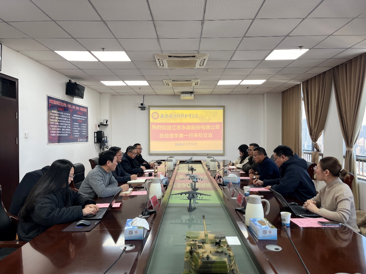 2026年1月13日,安徽国防科技职业学院与江苏永鼎股份有限公司在学校第一会议室举行校企合作交流座谈会,校长徐正红与江苏永鼎股份有限公司李鑫总经理等双方代表参会,围绕人才培养、产教融合合作事宜展开核心交流。