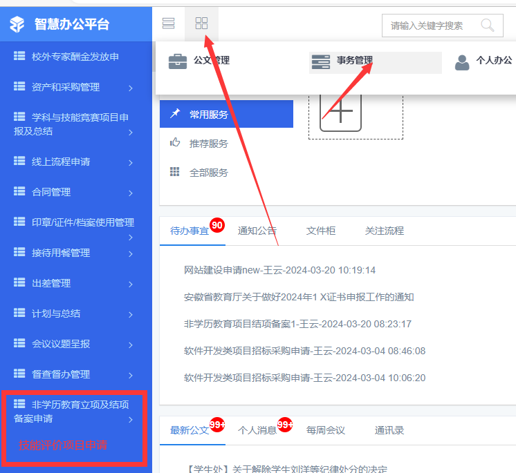 OA系统申请流程: