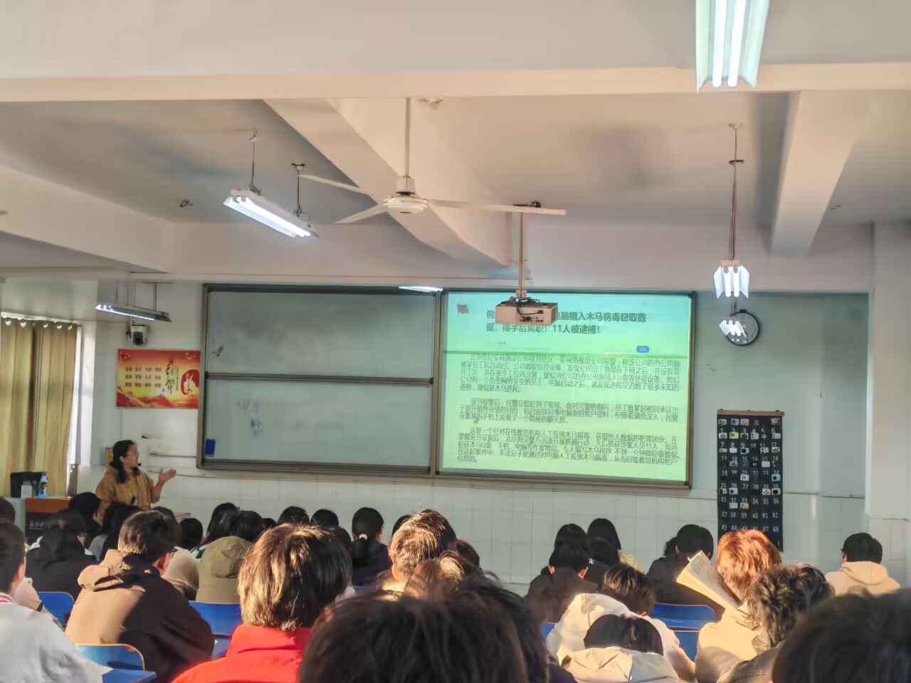 (汤晓莉老师于11月11日7-8节在2教205为25软件1班、网络1班学生讲授《自觉尊法学法守法用法》)