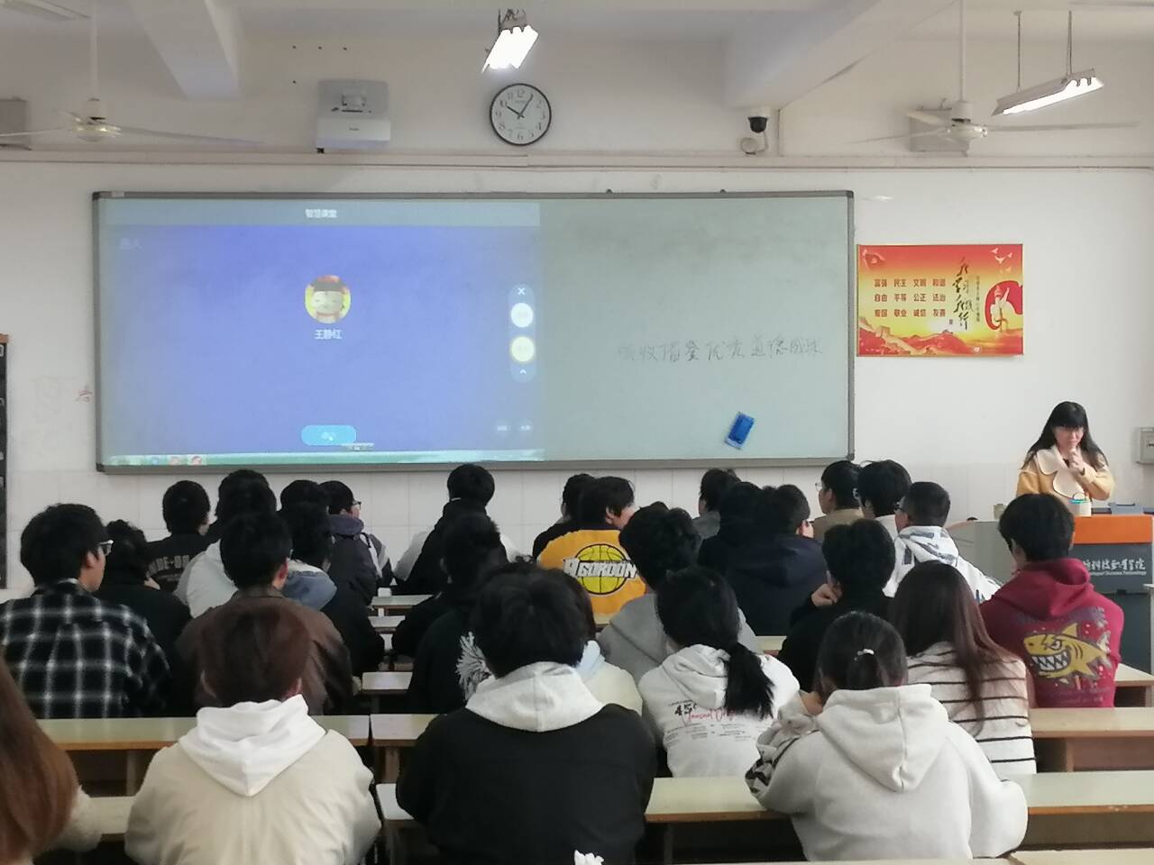 (汪月老师于11月6日7-8节在2教502为25转段计应1班学生讲授《社会主义道德的核心与原则》)