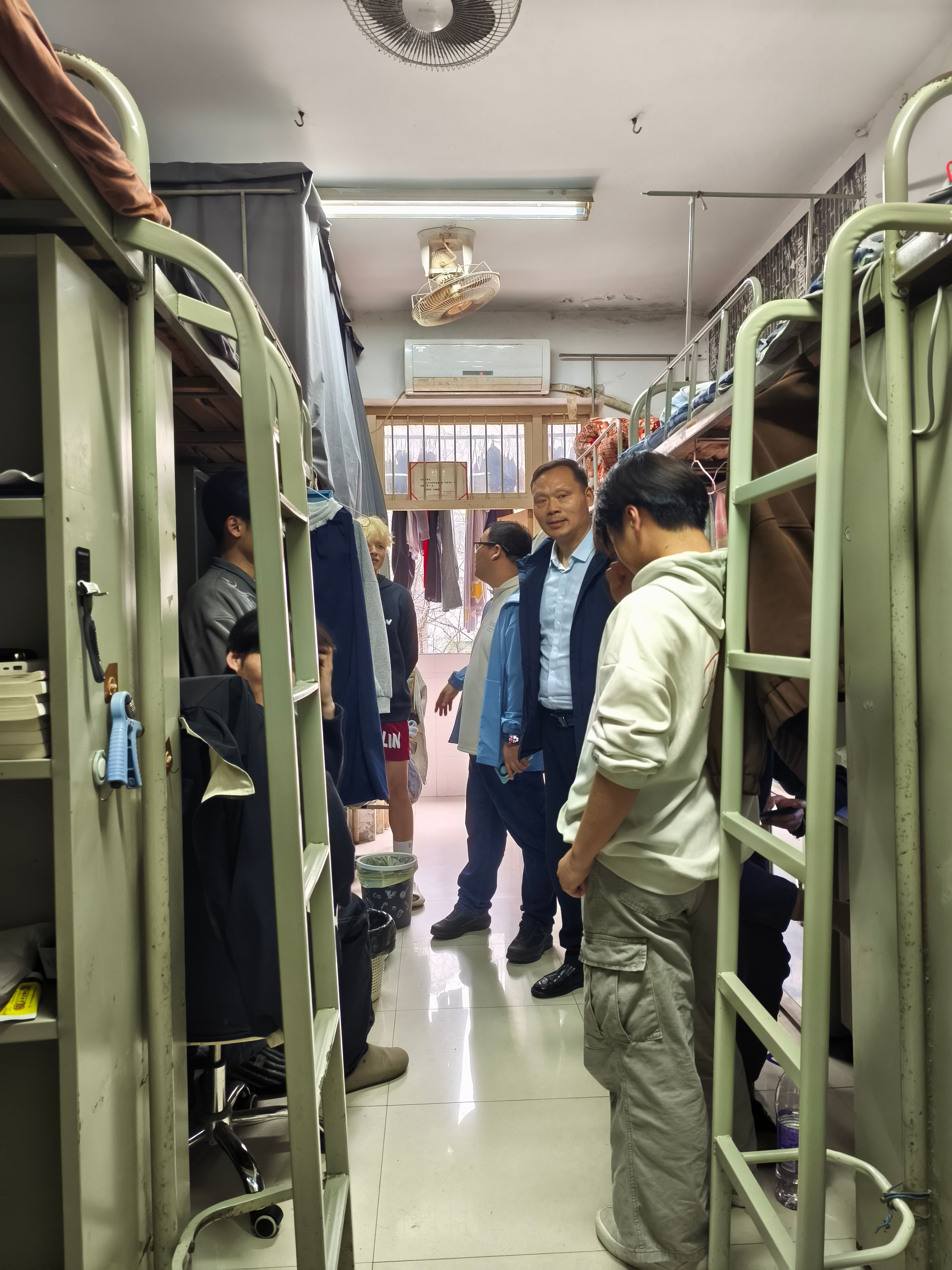 深入检查,筑牢防线。刘峰一行坚持结合“一站式”学生社区安全管理要求,全面排查宿舍安全隐患,重点检查违规用电、易燃易爆物品存放等关键环节,对潜在隐患现场提醒整改。同时就宿舍安全向同学们提醒:一要严守安全规定,杜绝违规用电等危险行为;二要强化防范意识,做到人走电断、人走门锁;三要妥善保管贵重物品,防范盗窃诈骗;四要维护宿舍环境,主动排查隐患,共建安全和谐的社区环境。