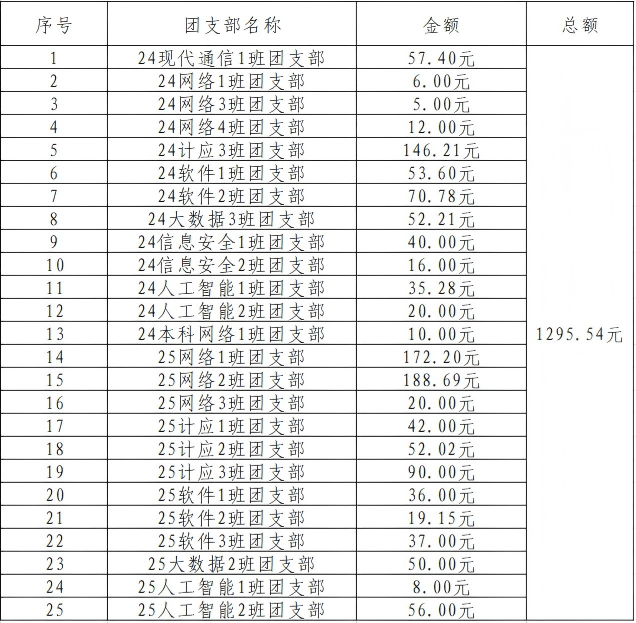 根据我校《关于在全校开展2025年“慈善一日捐”活动的通知》(校办〔2025〕8号)文件精神,信息技术学院团总支积极组织各班级团支部开展爱心捐款活动,为确保“慈善一日捐”活动公开透明,现将本次活动捐款情况进行公开公示,欢迎大家监督(监督电话:0564-3384332),具体捐款明细如下: