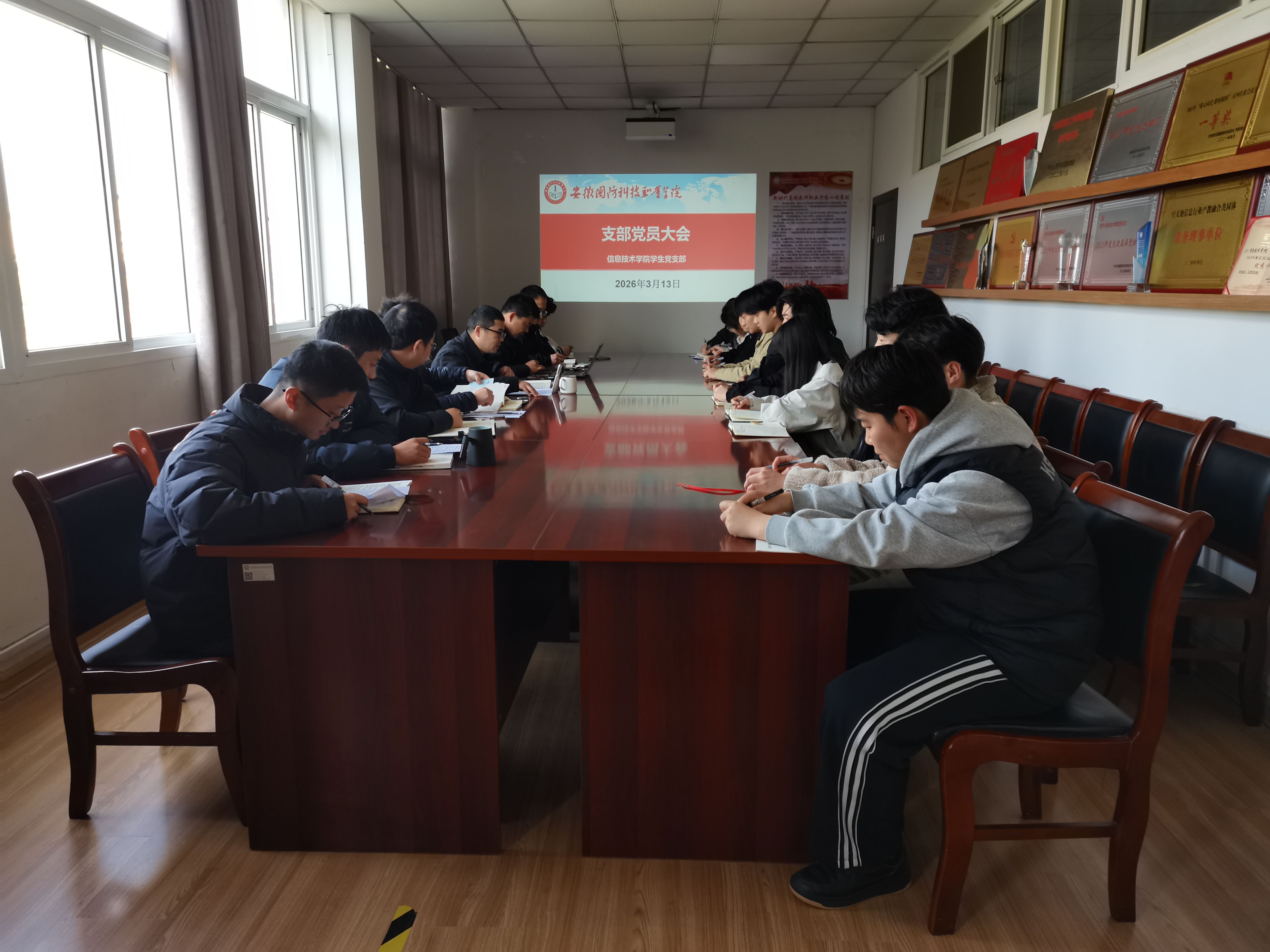 本网讯(学生通讯员 胡玉婷)3月13日,信息技术学院学生党支部在知行楼304会议室召开支部党员大会,部署支部树立和践行正确政绩观学习教育相关工作。会议由支部书记杜洪宇同志主持,全体在校师生党员现场参会,校外实习党员线上同步参会。