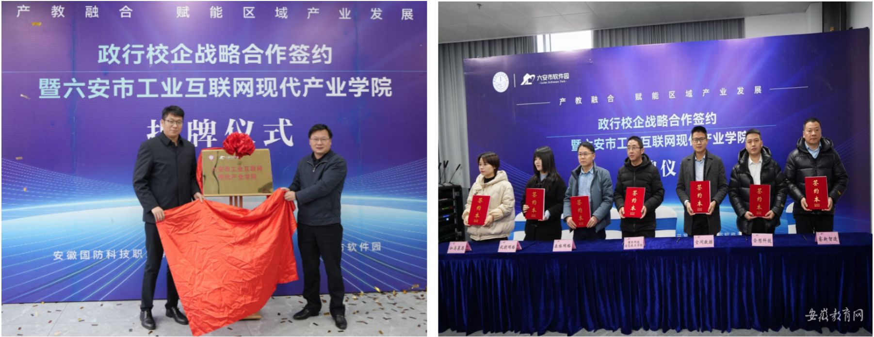 学校于2023年12月与六安市金安区经济技术开发区、六安市软件园及多企业联合建立了工业互联网产业学院。六安市工业互联网现代产业学院的成立,为信息技术学院开设工业互联网专业起到了推动管理机制创新、强化专业建设、促进产教融合以及优化人才培养模式等多方面的作用。