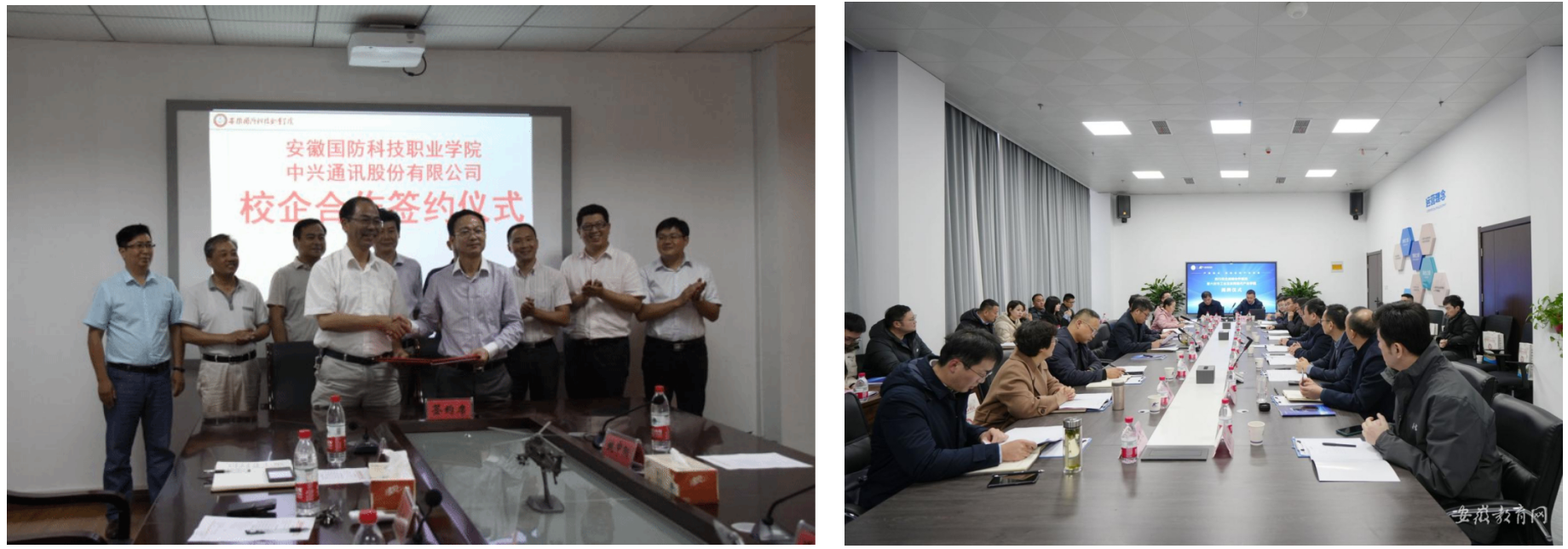 2017年安徽国防科技职业学院与中兴通讯股份有限公司签订了校企合作框架协议。双方秉持“专业共建,协同育人”原则,加大整合优势资源,逐步将国防学院中兴基地打造成为产教融合、校企合作示范性基地。近年来,基地陆续获批安徽省“校企合作示范实验实训中心”、“产教融合实训基地”、“虚拟仿真实训基地”、“现代学徒制试点”、“教师企业实践示范流动站”等建设培育项目。