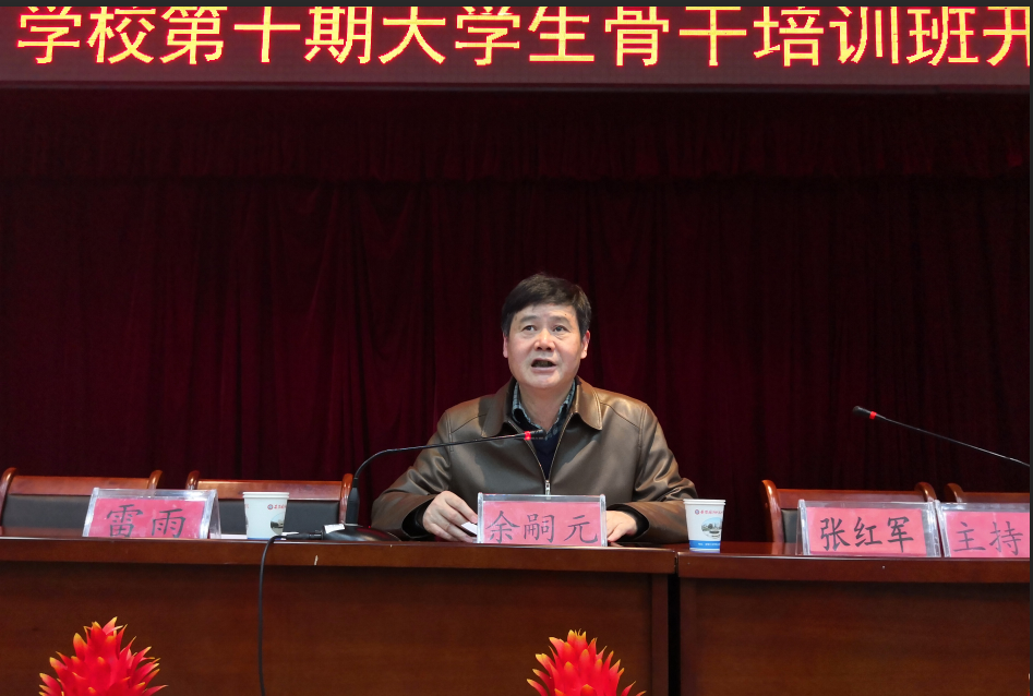 12月3日晚,我校“青马工程”第十期培训班开班仪式在图书馆报告厅隆重举行。校党委书记余嗣元出席并作重要报告,团委全体教师、各学院团总支书记及来自各团学组织的两百余名学生干部参加仪式。仪式由团委副书记张红军主持。