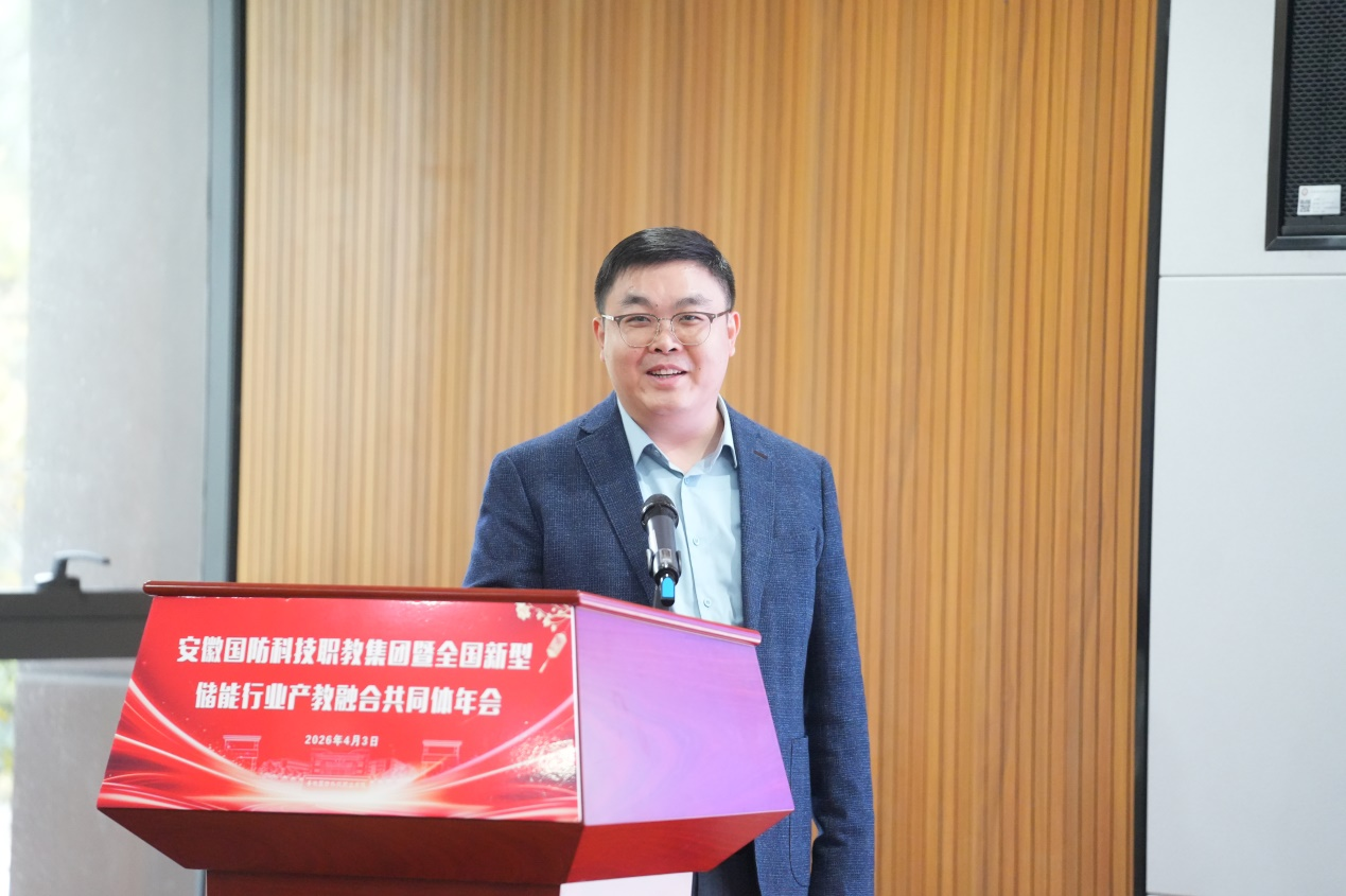 安徽国防科技职业学院党委副书记、校长徐正红致欢迎辞。他表示,过去一年,共同体在省级新型储能现代产业学院建设、工匠班组建、校企协同攻关、技术成果转化等方面取得扎实成效,实现教育链、人才链、产业链、创新链有机衔接。我校作为牵头单位,将坚守 “聚行业之力、汇院校之智、育时代之才” 的宗旨,持续发挥牵头引领与桥梁纽带作用,推动政行企校深度融合,为新型储能产业发展注入职教力量。
