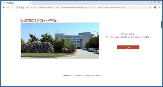 2. 输入认证用户名(工号)和密码(默认为123456),点击“登录”,出现如下界面后,关闭该界面(不是注销)即可正常上网。